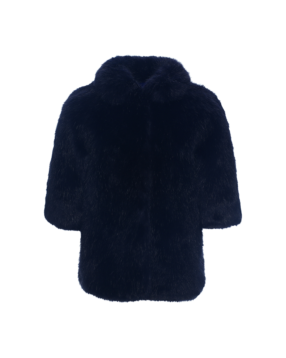 Children’s faux fur jacket Shell:100%Acrylic Lining:100%Polyester Taffeta Details:Webbing at front plackets Big snap buttons at the webbing Suggested color:Navy,Rabbit