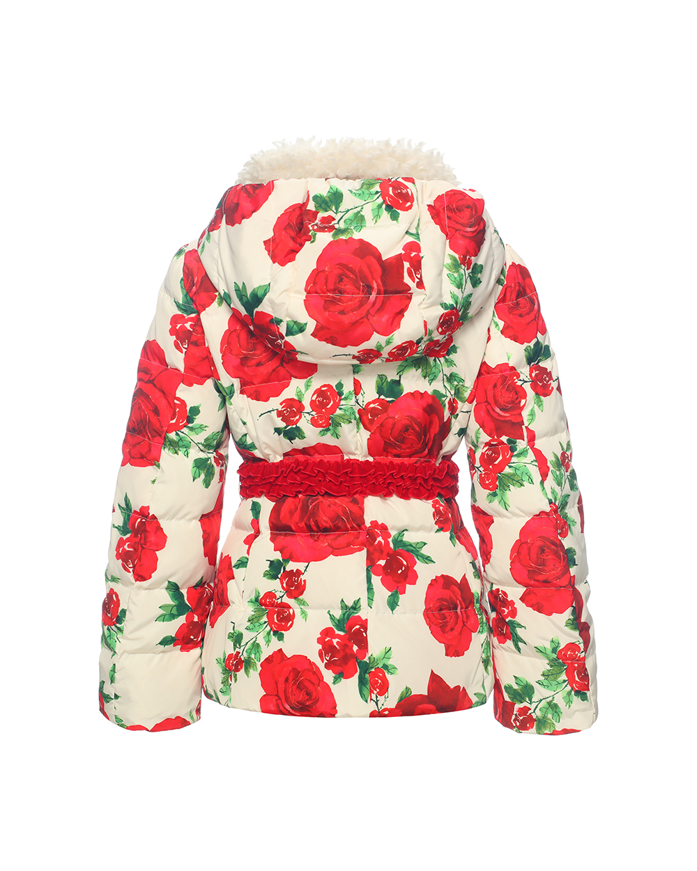 Children’s down coat Shell:100%polyester Fur Trim:100%Polyester Filling:80%White down,20%Feather Lining:100%Polyester taffeta Details:Big flower printing fabric Two plackets design 5#Plastic zipper with double heads at inner placket Invisble silver snap buttons at outter placket Elastic tape at waist with metal buckle Fur trim inside collar Big hood design Wind proof cuffs Suggested color:Priting fabric