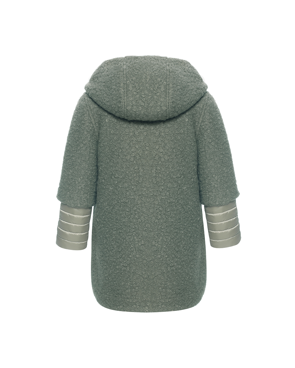 Children’s faux short fur two sets jacket Shell for outter jacket:100%polyester Hood Lining:100%Nylon Roll trim:100%Polyester Taffeta Shell for inner jacket:100%Nylon Padding:100%Polyester Lining:100%Polyester taffeta Details for outter:Flower trim at collar Silver snap buttons at front placket Two side pockets without flap Details for inner:5#plastic zipper at front Two side pockets with invisible zippers Suggested color:Green,Pink,Blue